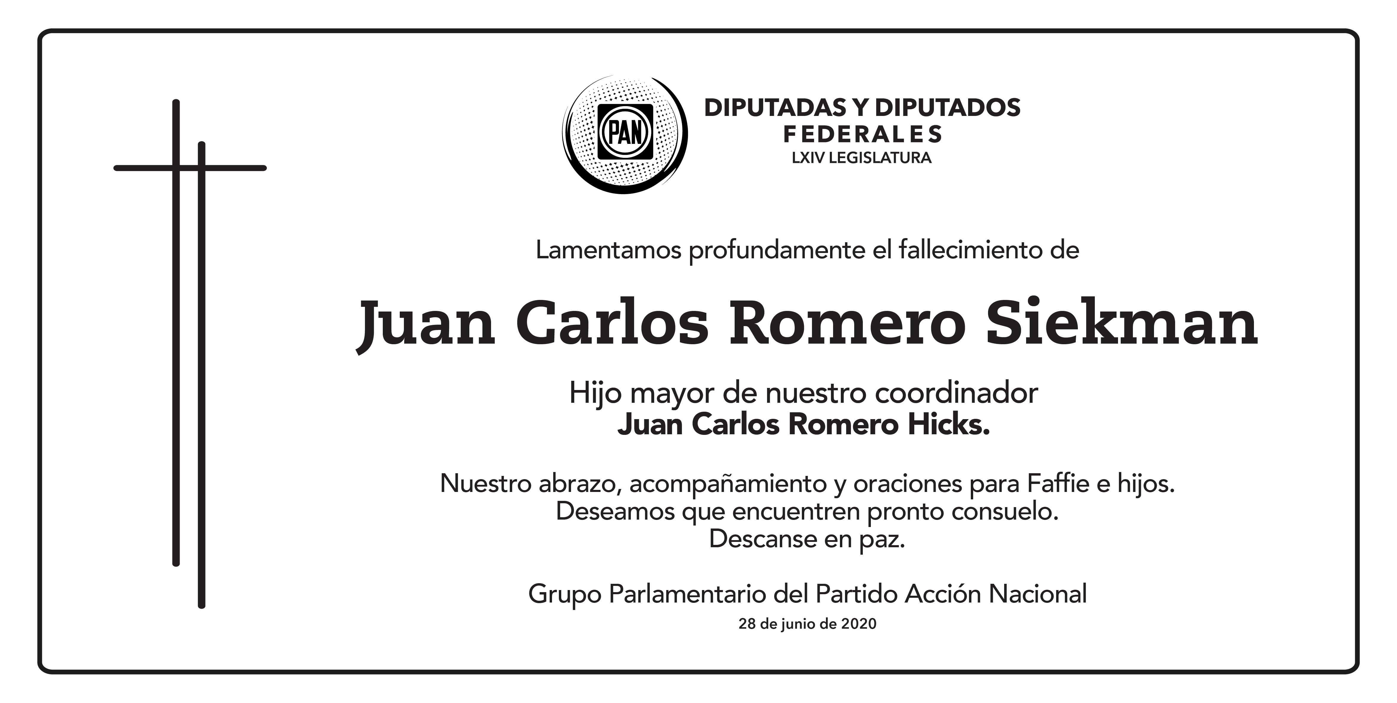 Lamentamos profundamente el fallecimiento de Juan Carlos Romero Siekman